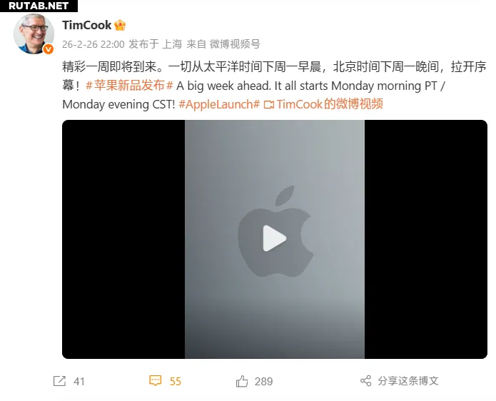 Генеральный директор Apple Тим Кук опубликовал сообщение, в котором намекнул на грядущее событие. «На следующей неделе будет жарко! Всё начнётся в понедельник вечером», — написал он, имея в виду понедельник, 2 марта 2026 года (по московскому времени презентация, вероятно, начнётся поздно вечером).