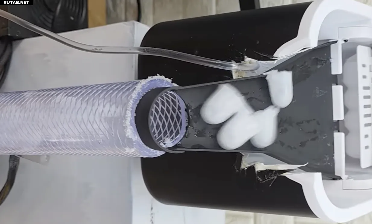 Идея заключается в использовании обычного водяного льда для охлаждения CPU. Основная проблема такого подхода — быстрое таяние льда. Для её решения энтузиаст создал замкнутую систему: ледяные кубики из специальной машины попадают в пластиковую трубку, которая установлена на металлическом стакане, контактирующем с процессором через алюминиевую пластину.