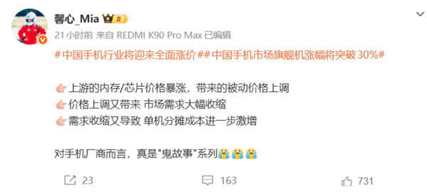 Март станет ключевым моментом для этого раунда подорожания. Новые модели, выпущенные после марта, подорожают значительно сильнее — как минимум на 1000 юаней (~12000 руб.), а флагманы среднего и высокого уровня могут подорожать на 2000-3000 юаней (~24000-36000 руб.).