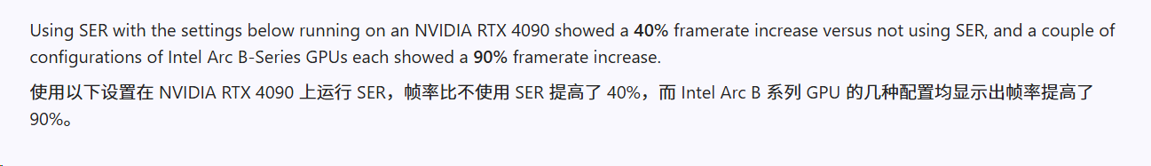Microsoft сообщает, что на NVIDIA GeForce RTX 4090 включение SER даёт прирост производительности в 40%. А вот видеокарты Intel Arc B-Series в нескольких конфигурациях демонстрируют рост производительности до 90%.