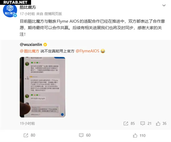 Китайский производитель планшетов и другой электроники Cube (酷比魔方) объявил о начале переговоров по адаптации своей операционной системы для устройств под управление Flyme AIOS от компании Meizu.