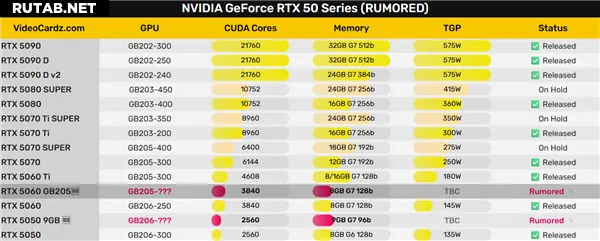 Также сообщается, что версия RTX 5060 с 12 ГБ памяти на 3-гигабитных чипах была отменена.