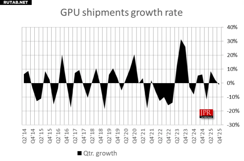 JPR отмечает, что рынок ПК и графических процессоров столкнётся с серьёзными вызовами: колебаниями тарифов, дефицитом и ростом цен на память, а также последствиями военных действий на Ближнем Востоке.