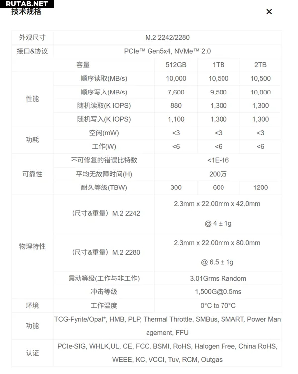 Накопитель будет доступен в двух форм-факторах — M.2 2280 и M.2 2242, и в трёх вариантах ёмкости: 512 ГБ, 1 ТБ и 2 ТБ (без DRAM-кэша). Все версии поддерживают интерфейс PCIe 5.0 x4 и стандарт NVMe 2.0.