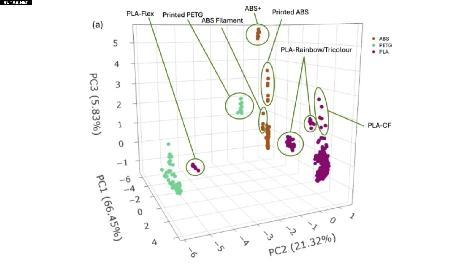 Анализ стружки с помощью спектрометра ATR-FTIR показал, что оборудование не смогло различить бренды, цвета или состояние филамента (сырой или напечатанный).