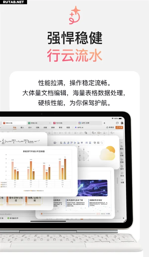Новая версия WPS для iPad воспроизводит интерфейс настольной версии, сопоставимый с версией для Windows, и поддерживает совместную работу на нескольких устройствах — мобильных и ПК. Приложение поддерживает создание документов Word, Excel и PowerPoint и совместимо с широким спектром форматов файлов, включая doc, docx, xlsx, pptx и собственный формат WPS.