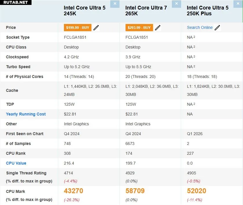 По мере приближения даты анонса реальные возможности процессоров Core Ultra 5 250K Plus и Ultra 7 270K Plus станут полностью известны.