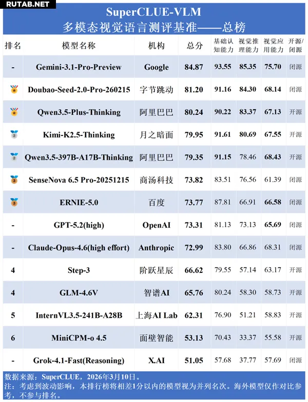 Модель Doubao-Seed-2.0-Pro-260215 от ByteDance с 81.20 балла возглавила китайский сегмент. За ней следуют Qwen3.5-Plus-Thinking от Alibaba (80.24 балла) и Kimi-K2.5-Thinking от Moonshot AI (79.95 балла), вместе составившие первую лидерскую группу.