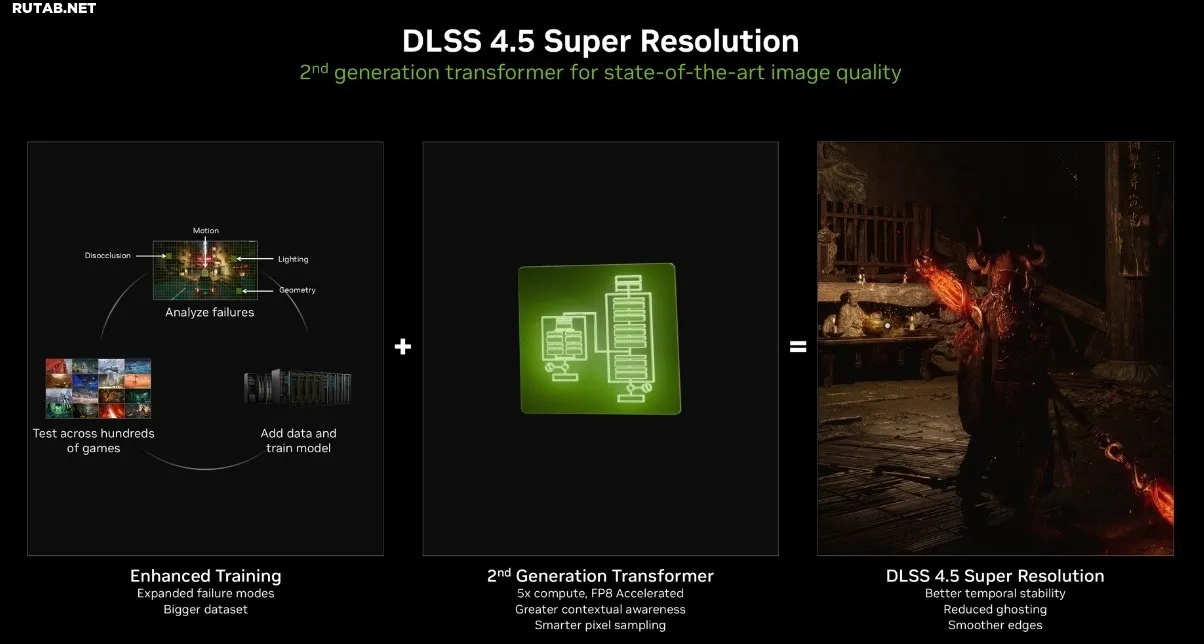 Напомним, DLSS (Deep Learning Super Sampling) — это технология глубокого обучения для суперсэмплинга. Она использует ИИ для рендеринга изображения в низком разрешении с последующим масштабированием до целевого, что позволяет повысить частоту кадров. DLSS 4.5 улучшает не только производительность, но и качество изображения, что и стало главной темой обсуждения этого обновления.