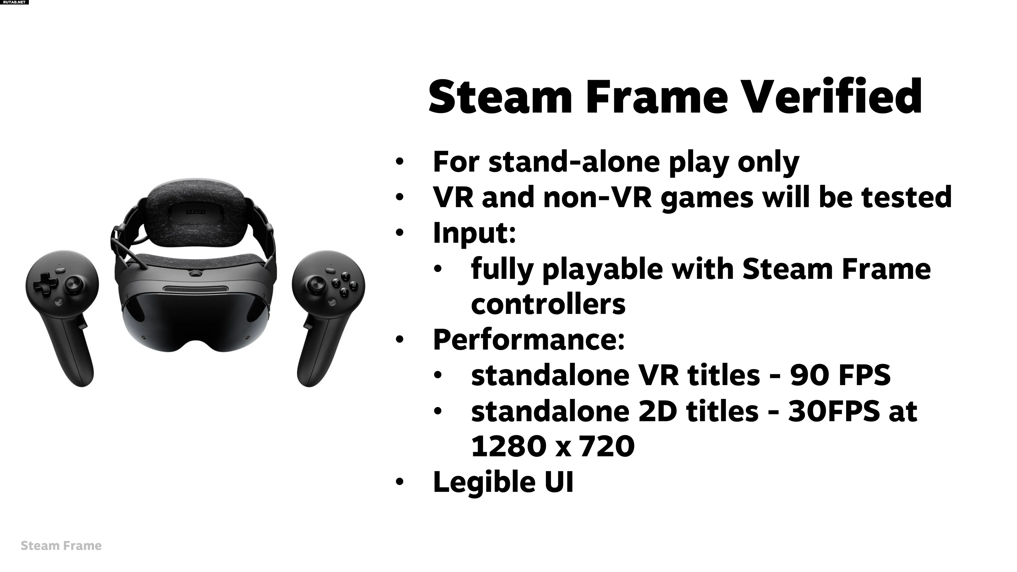 Что касается VR-гарнитуры Steam Frame, то для игр, транслируемых с ПК, отдельной проверки не требуется. Однако для автономного режима работы (на собственном Arm-чипе гарнитуры) существуют чёткие критерии: VR-игры должны обеспечивать 90 кадров в секунду, а обычные 2D-проекты — 30 кадров в секунду при разрешении 720p.