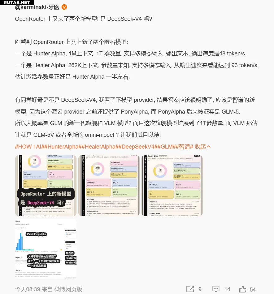 Многие предположили, что Hunter Alpha — это и есть грядущая DeepSeek V4. Однако, эксперт по оценке больших моделей ИИ @karminski-dentist заявил, что это не V4, а, вероятно, новая модель от компании Zhipu AI, возможно, их флагманская модель следующего поколения.