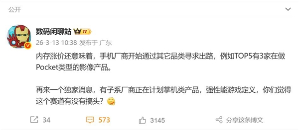 Согласно сообщениям, три из пяти крупнейших мировых брендов уже разрабатывают карманные мобильные продукты для съёмки (Pocket), нацеливаясь на лидера рынка — компанию DJI. Это движение предвещает новый раунд межотраслевой конкуренции на рынке портативных камер.