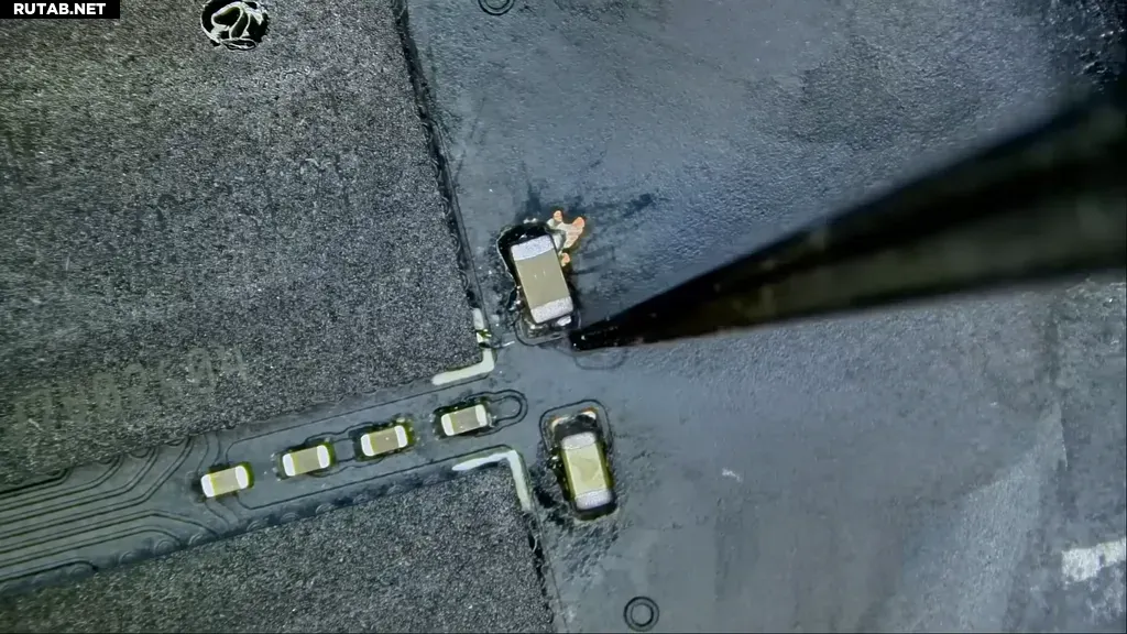 При осмотре под микроскопом были обнаружены физические трещины по краям GPU из-за проникновения металла, что привело к внутреннему короткому замыканию и смерти чипа. Модули видеопамяти также были повреждены. Замыкание на землю в цепи питания 1.8V указывало на то, что жидкий металл достиг заземляющих контактных площадок и разрушил критически важные цепи.