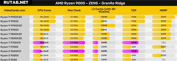 AMD готовит процессоры Ryzen 7 9750X и Ryzen 5 9650X с повышенной частотой и TDP