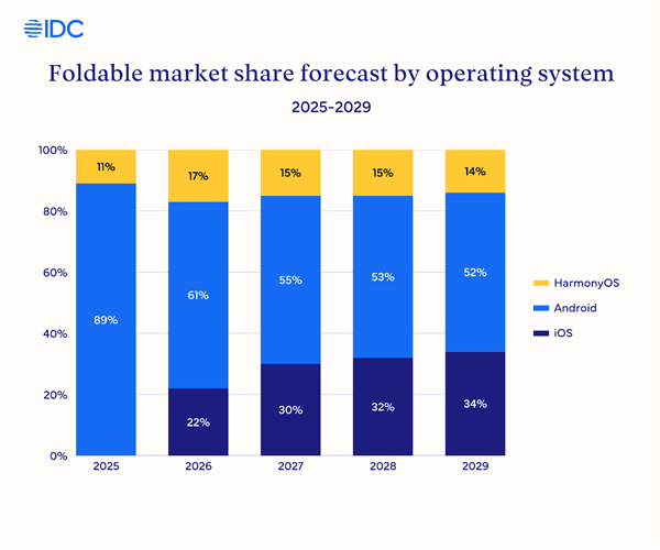 Ожидается, что Samsung, благодаря технологическому опыту и глобальным каналам сбыта, сохранит лидерство с 60% рынка. Huawei, опираясь на доминирование в Китае и экосистему HarmonyOS, займёт 17% мирового рынка.