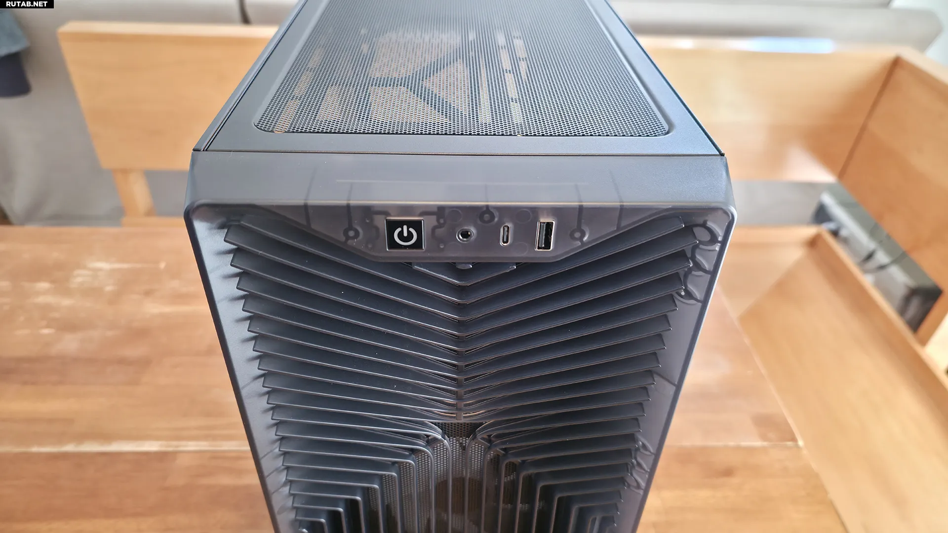 Съемная передняя панель получила новый рисунок, напоминающий серию корпусов Fractal Torrent, что должно улучшить подачу воздуха. Кнопка питания расположена на передней верхней панели, рядом с портами ввода-вывода: USB 3.2 Gen 2x2 Type-C, USB 2.0 Type-A и комбинированный аудиоразъем 3.5 мм. Боковая панель слева выполнена из закаленного стекла, а правая — из стандартной стали. Интересно, что верхняя панель не съемная, вместо этого там расположена большая открытая область с креплениями и съемный магнитный сетчатый фильтр.