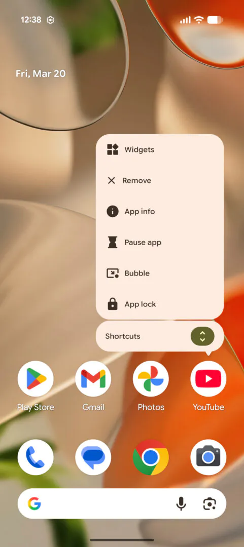 Также появились App Bubbles — «пузырьки» приложений, похожие на те, что есть в Messenger. Удерживая значок приложения на главном экране, можно запустить его в виде перемещаемого поверх других окон элемента.