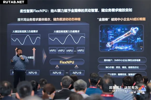 Гу Цзюнцзюн сравнил FlexNPU с «волшебной палицей Руй И Цзинь Гу Бан», которая «может быть и большой, и маленькой, меняясь по желанию». По его словам, FlexNPU придаёт вычислительным мощностям NPU или GPU способность к «гибкому или жидкому» предоставлению и масштабированию ресурсов. Они могут динамически меняться в соответствии с любыми бизнес-потребностями, двигаясь «по требованию». Максимизируя утилизацию инвестиций в ИИ-вычисления, в итоге достигается оптимизация стоимости токенов.