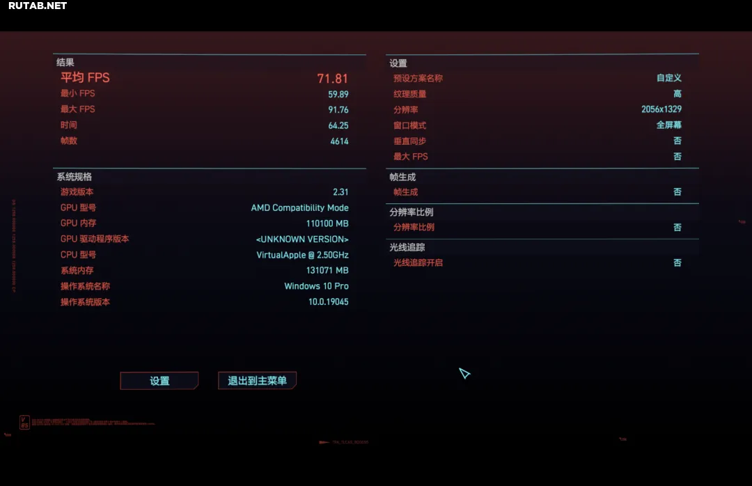 Производительности M5 Max хватает даже для игр. В «Cyberpunk 2077» на ультравысоких настройках и разрешении около 2K удалось достичь более 70 кадров в секунду.