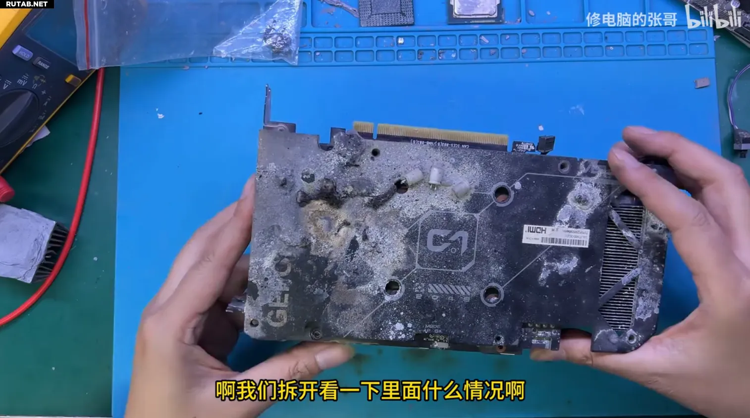 По словам мастера, корпус видеокарты был сильно обуглен, а печатная плата покрыта следами окисления. Он тщательно очистил поверхность платы с помощью зубной щётки и воды, а затем провёл серию замеров сопротивления. К его удивлению, признаков короткого замыкания обнаружено не было, что дало надежду на то, что плата и цепи питания GPU могли уцелеть.