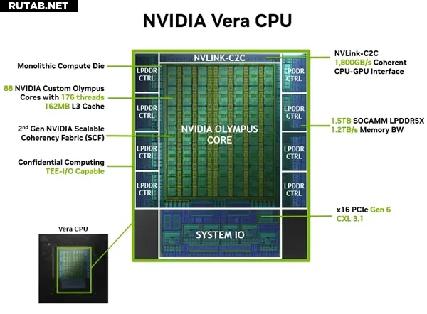 У NVIDIA есть основания бросать вызов традиционным гигантам AMD и Intel в области CPU. Vera CPU позиционируется как первый в мире процессор, созданный специально для AI-агентов и обучения с подкреплением. По заявлениям компании, его эффективность вдвое выше, а скорость на 50% больше, чем у традиционных CPU. Чип интегрирует 88 собственных ARM-ядер и поддерживает гиперпоточность.