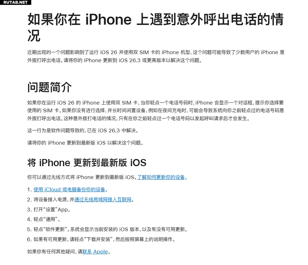 Согласно разъяснению компании, проблема возникает на iPhone под управлением iOS 26 при использовании двух SIM-карт. Когда пользователь нажимает на номер телефона, iPhone отображает диалоговое окно с предложением выбрать SIM-карту для звонка.