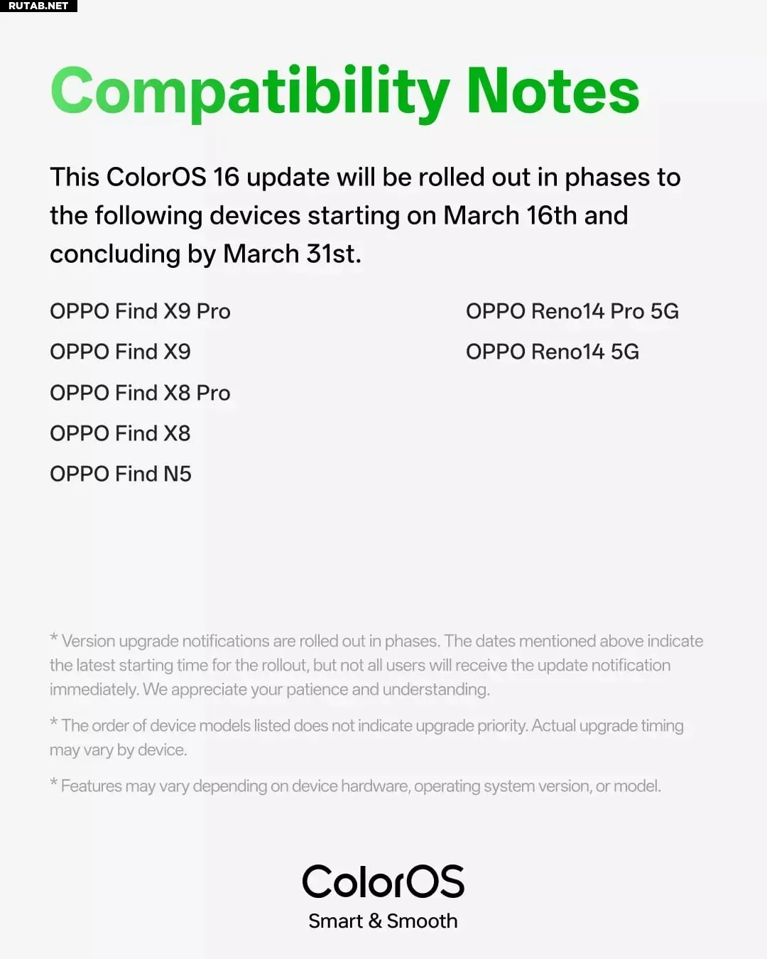 Обновление распространяется на несколько устройств OPPO, включая Find X9 Pro, Find X9, Find X8 Pro, Find X8, Find N5, Reno 14 Pro 5G и Reno 14 5G. Как и в случае с большинством поэтапных выпусков, доступность может различаться, и не все пользователи получат обновление одновременно.