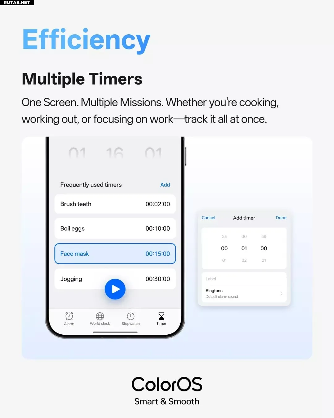 ColorOS 16 также представила поддержку одновременного запуска нескольких таймеров. Пользователи могут управлять разными активностями на одном экране, будь то готовка, тренировки или отслеживание задач. Каждый таймер можно подписать и отслеживать вместе с другими, а интерфейс теперь показывает расчетное время окончания, что упрощает планирование текущих дел.