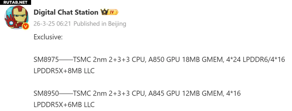 Согласно утечке, Qualcomm работает над двумя моделями, идентифицированными как SM8950 и SM8975, обе, как сообщается, производятся по передовому 2-нм процессу TSMC. Эти чипы, как упоминалось выше, ожидаются под названиями Snapdragon 8 Elite Gen 6 и 8 Elite Gen 6 Pro соответственно.