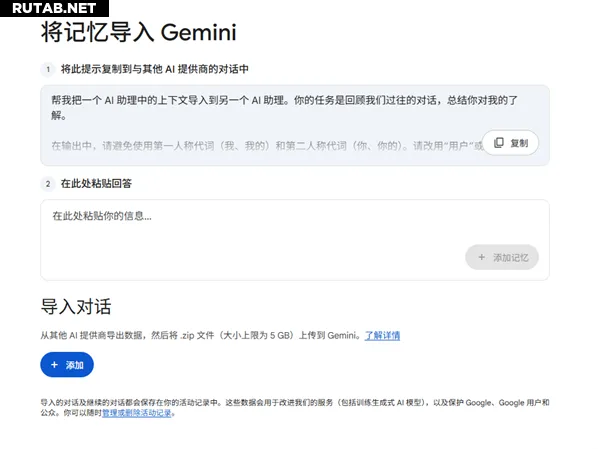 Второй — пакетный импорт данных диалогов. Пользователи могут экспортировать историю разговоров от другого провайдера ИИ, упаковать её в zip-архив и загрузить в Gemini. Максимальный поддерживаемый размер файла — 5 ГБ.