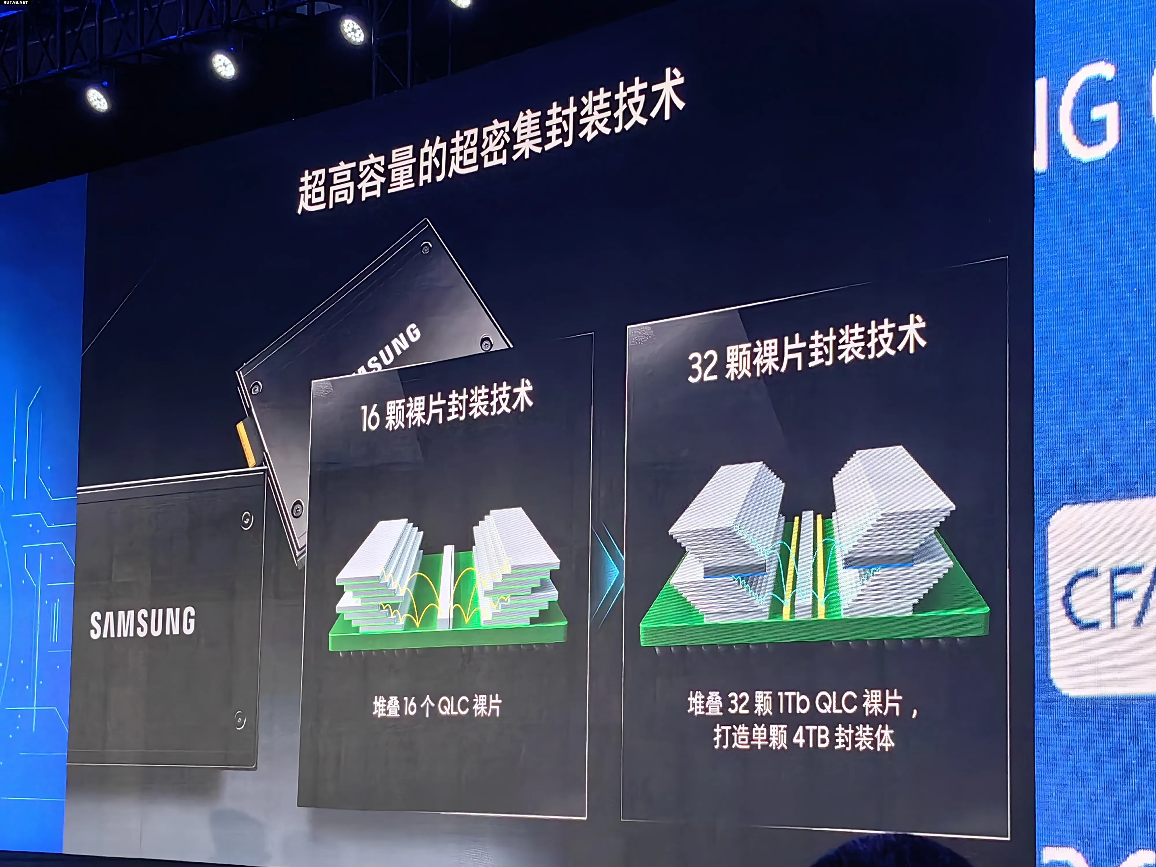 Новое поколение технологии 32-кристальной упаковки, с использованием 32 кристаллов QLC ёмкостью 1 Тбит каждый, позволяет создать упаковку ёмкостью 4 ТБ на одном модуле. Это напрямую ведёт к удвоению ёмкости всего накопителя.