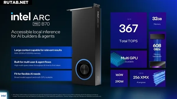 По аппаратным характеристикам, Arc Pro B70 оснащена 32 вычислительными ядрами Xe и 256 движками XMX. Тестировалась версия с эталонным дизайном Intel с ограничением мощности в 230 Вт, в то время как официально заявленный предел мощности для карты составляет 290 Вт.