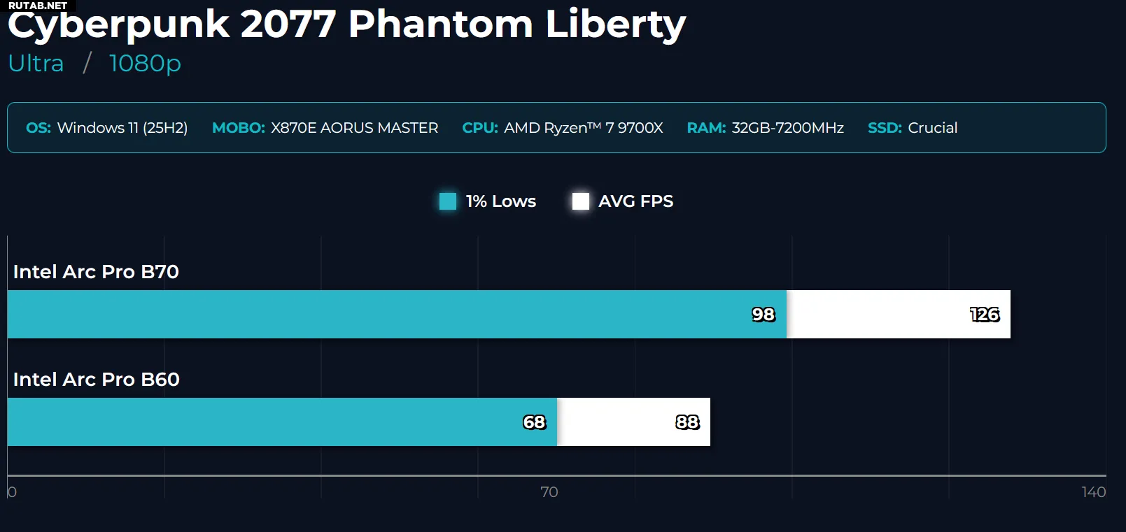 Intel Arc Pro B70: тестирование игровой производительности новой видеокарты с 32 ГБ памяти