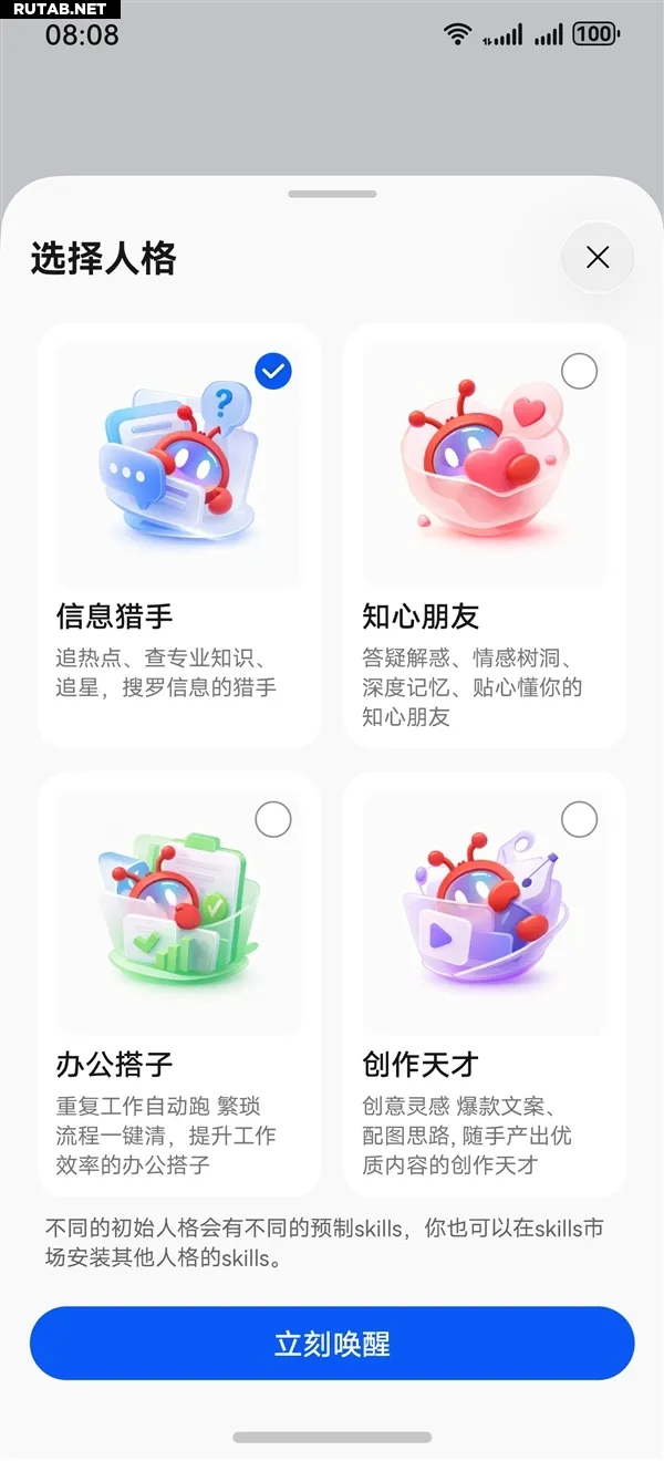 Пользователям предлагается на выбор четыре начальных типа личности помощника: «Охотник за информацией», «Близкий друг», «Офисный партнер» и «Творческий гений». Каждый тип наделён соответствующими предустановленными навыками, а возможности можно расширять через специальную Торговую площадку навыков.