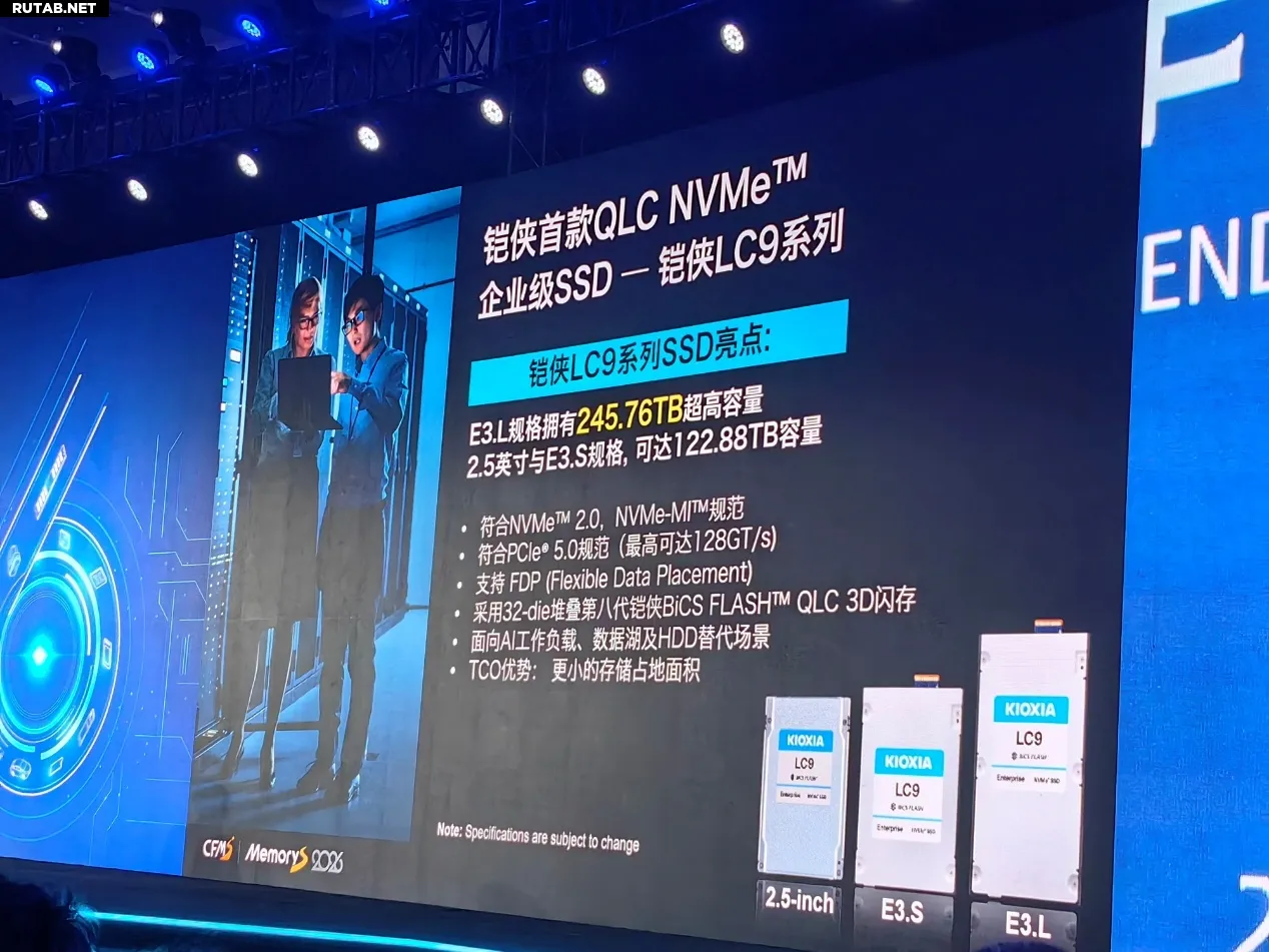 Что касается решений большой ёмкости, Kioxia анонсировала корпоративный SSD серии LC9 — свой первый накопитель на QLC-памяти.
