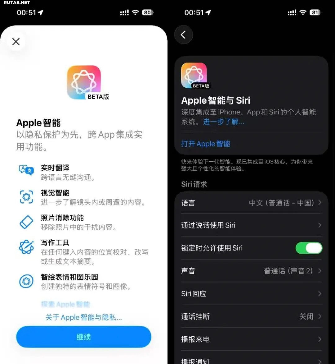 В настройках опция «Siri» превратилась в «Apple Intelligence и Siri», а иконка сменилась на новую, переливающуюся всеми цветами. После загрузки локального пакета данных объёмом около 10 ГБ китайская версия Apple AI стала доступна для использования. Однако важно отметить, что это была случайная, а не официальная публикация.