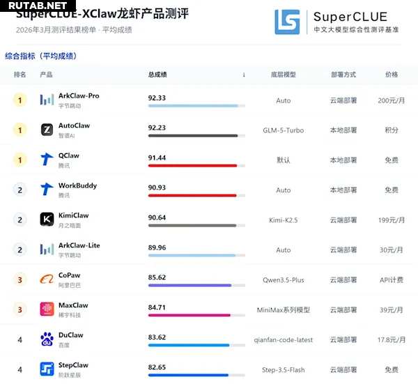 Результаты показали, что QClaw от Tencent, благодаря отличным показателям, стал лучшим среди бесплатных продуктов, разделив первое место по общему баллу с ArkClaw-Pro от ByteDance и AutoClaw от Zhipu AI.