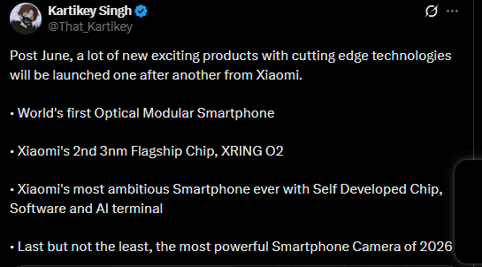Новый слух от инсайдера Картикея Сингха предполагает, что Xiaomi планирует выпустить несколько амбициозных устройств во второй половине 2026 года. Речь идёт не о рутинных обновлениях, а о фокусе на камеры, модульный дизайн и собственные чипы.