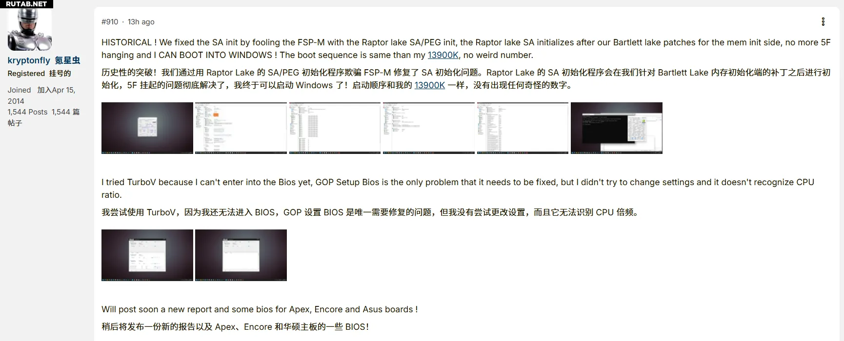 Проект по модификации процессоров Bartlett Lake-S на форуме Overclock.net достиг важной вехи. Энтузиасту удалось успешно загрузить операционную систему Windows на процессоре Intel Core 9 273PQE, установленном в материнскую плату ASUS Z790.