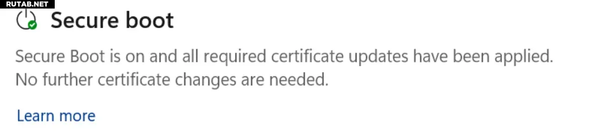 - Зелёная галочка: устройство завершило все необходимые обновления сертификатов Secure Boot и установку диспетчера загрузки. Дополнительных действий не требуется.