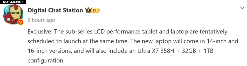 Согласно данным инсайдера, новые ноутбуки Redmi получат процессор Intel Core Ultra X7 358H, 32 ГБ оперативной памяти и накопитель на 1 ТБ. Устройства будут доступны в двух вариантах с диагоналями экрана 14 и 16 дюймов.