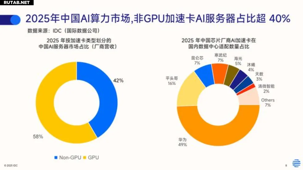 Доли Muxi и Tianshu Zhixin составляют 1,7% и 1,3% соответственно. Moore Threads и Biren также присутствуют на рынке, но их точные объёмы продаж не раскрываются.