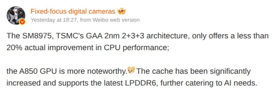 Согласно китайскому инсайдеру Fixed Focus Digital, Snapdragon 8 Elite Gen 6 Pro, который, как утверждается, будет производиться по 2-нанометровому техпроцессу, обеспечит менее 20% прироста производительности CPU. Вместо этого основные улучшения могут быть связаны с графическим процессором.