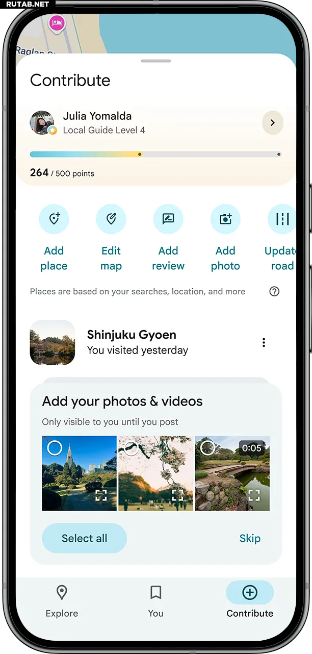 Кроме того, Google упрощает поиск подходящего изображения для публикации в сообществе. Если пользователь разрешит Google Maps доступ к медиафайлам в настройках своего телефона, он увидит фотографии и видео из своих недавних поездок прямо во вкладке «Сделать вклад». Оттуда можно будет нажать на фото и опубликовать его.
