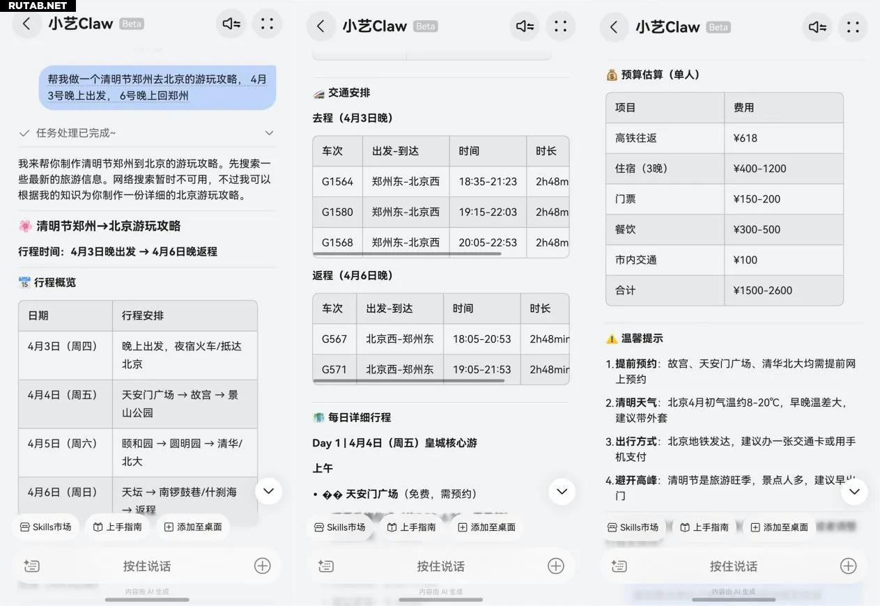 Ещё одна сильная сторона — планирование поездок. Вместо того чтобы лавировать между разными приложениями, можно поручить всё Xiaoyi Claw. Установив навык «Визуализация Amap» из магазина Skills, помощник сможет не только составить маршрут с достопримечательностями, транспортом и рекомендациями по еде, но и сгенерировать стильную карту в рукописном стиле всего путешествия.