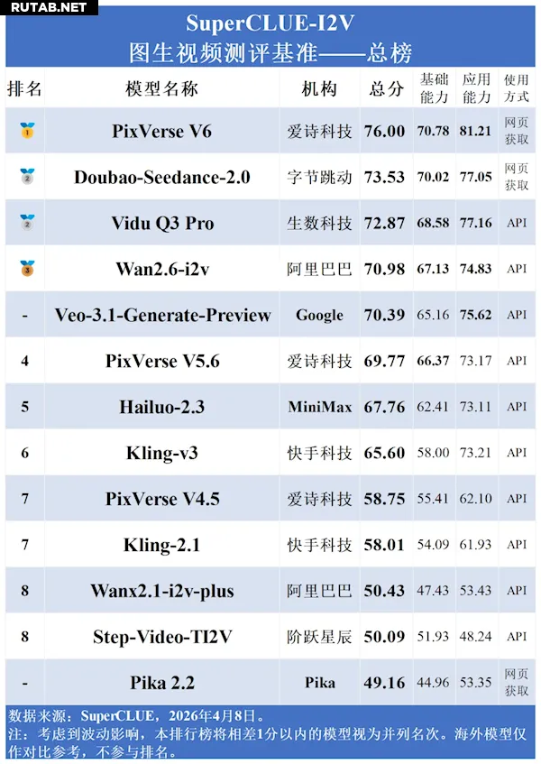 Китайские модели для генерации видео из изображений продемонстрировали выдающиеся результаты в апрельском рейтинге SuperCLUE, заняв три верхние строчки и опередив зарубежные аналоги.