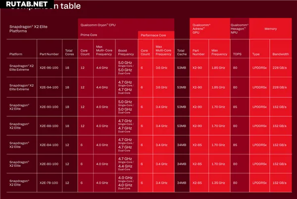 Линейка Snapdragon X2 Elite включает семь вариантов, от флагманского X2E-96-100 с 18 ядрами (12+6) и частотой до 5.0 ГГц до более доступных 12-ядерных и 6-ядерных моделей. Это позволяет производителям гибко настраивать баланс между производительностью и энергоэффективностью.