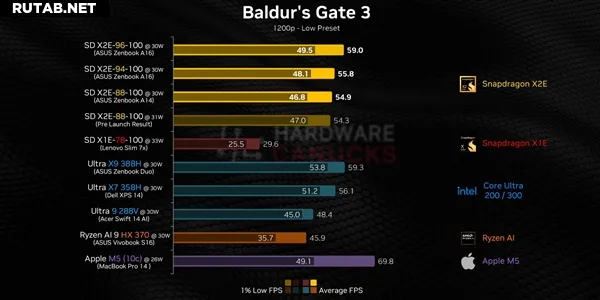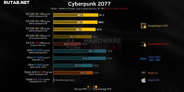 Ноутбуки на Snapdragon X2 Elite показали игровые возможности: лучше AMD, но до Intel далеко