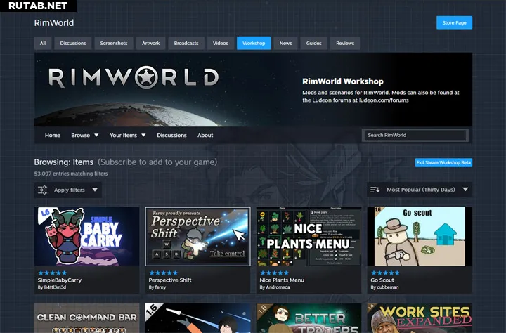 - Добавлен новый быстрый просмотр (активируется кликом на маленькую иконку лупы в углу каждого элемента), который позволяет, среди прочего, просматривать скриншоты, голосовать или подписываться на моды, не выходя из режима просмотра.