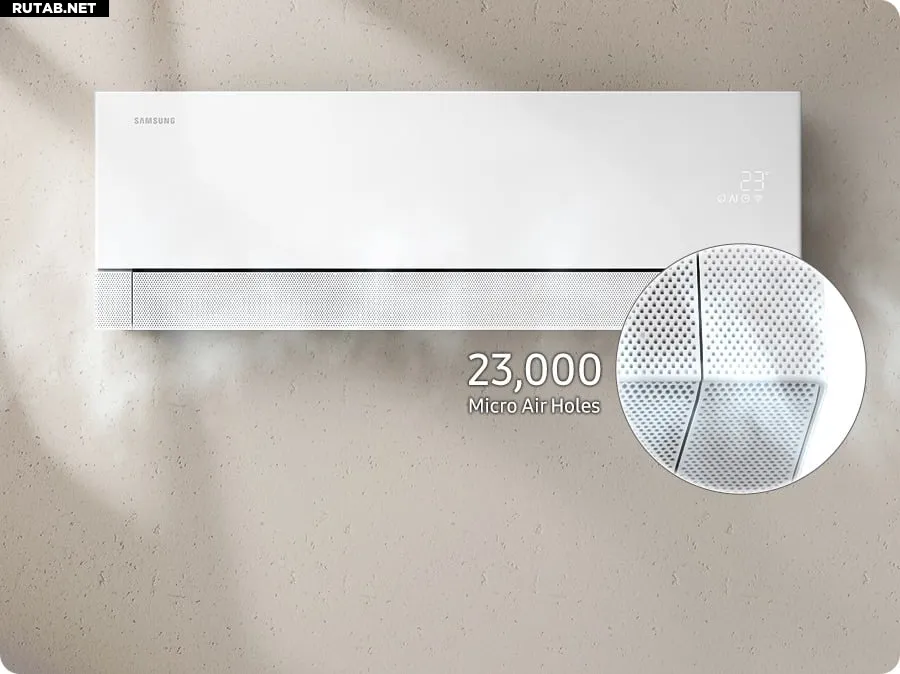 Кондиционер предлагает уникальную систему 5 Motion Wind. Пользователи могут выбирать из пяти режимов охлаждения: Max Wind для мгновенного охлаждения, Surround Wind для равномерного распределения воздуха, Long Reach Wind для увеличенного потока, Down Wind для направленного комфорта и режим WindFree для мягкого охлаждения без резких потоков воздуха. По заявлению Samsung, режим WindFree потребляет до 77% меньше энергии по сравнению с традиционными режимами. Технология WindFree использует 23 000 микроотверстий, которые мягко рассеивают воздух по комнате, повышая комфорт без создания холодных сквозняков.